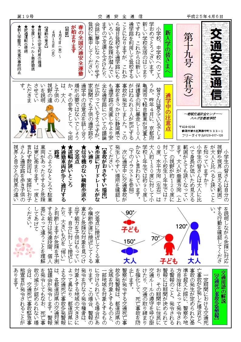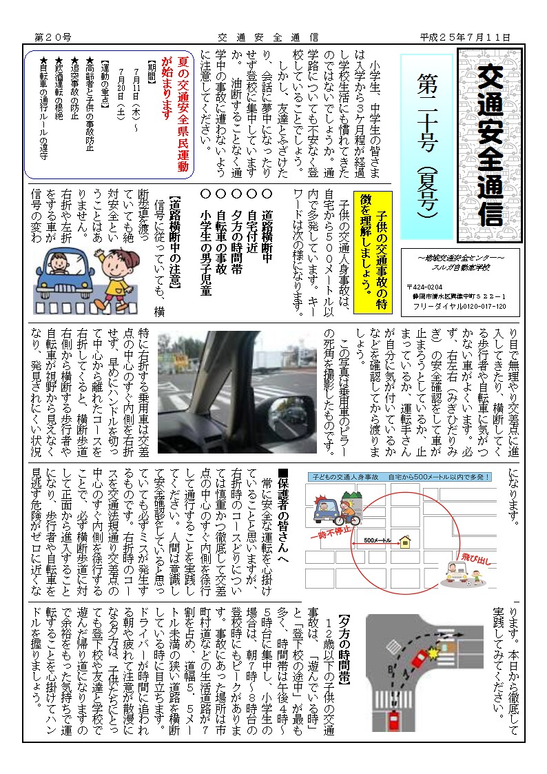スルガ自動車学校では、”交通安全通信”を地元の小・中学校等に